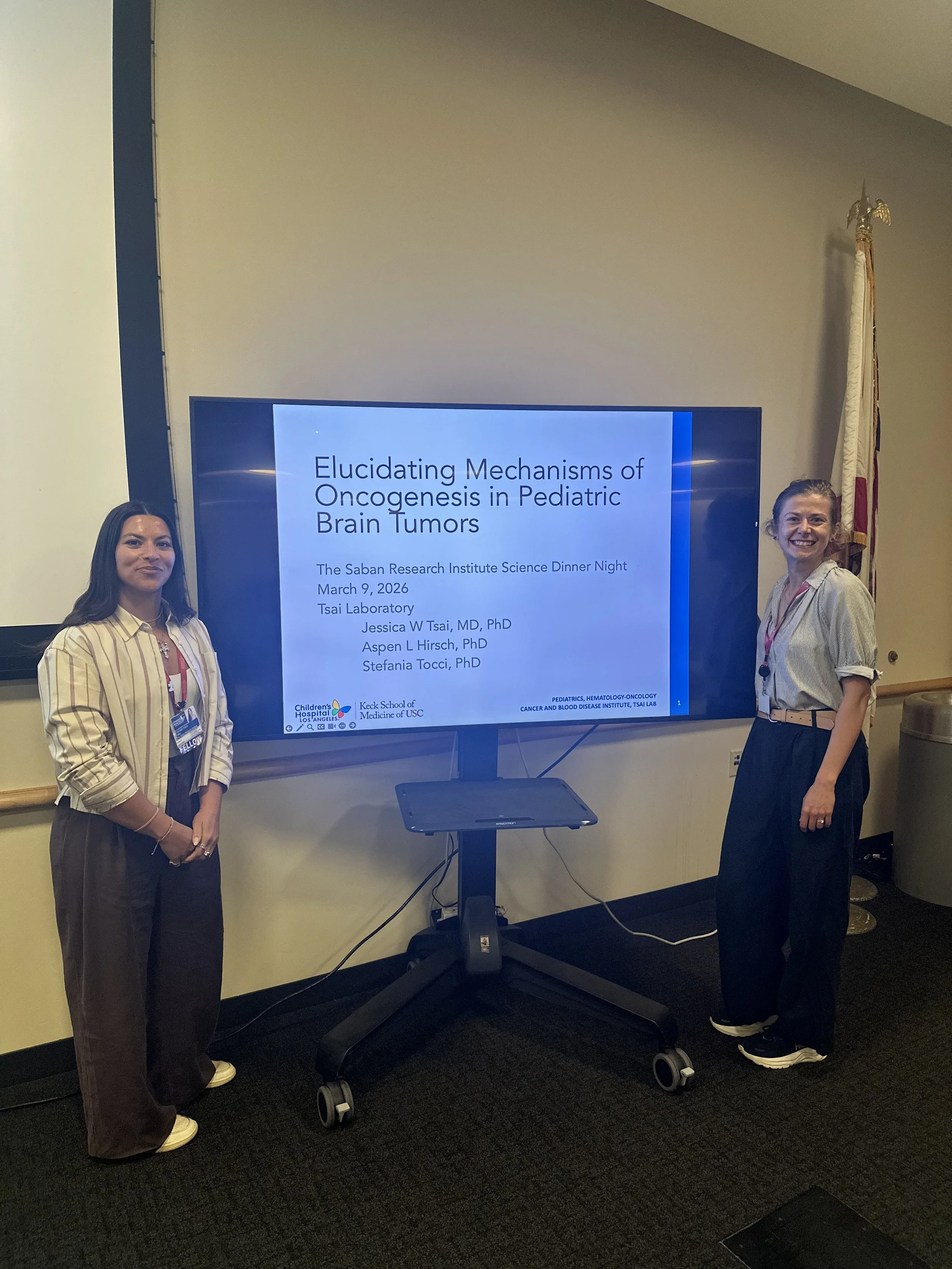 Today was a busy day for the Tsai Lab! We welcomed Amelia Tsark, first year PIBBS PhD student, to the lab for her rotation. Our lab also presented at the Saban Research Institute Science Dinner Night - congratulations to Aspen and Stefania who did a fantastic job sharing their work with the broader CHLA community!